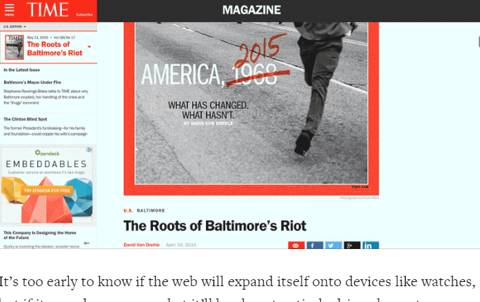 那些將文章分成多頁的網(wǎng)站估計馬上會明白,文章內(nèi)容應(yīng)該做成單頁的,哪怕很長很長,甚至可以像時代雜志學(xué)習(xí),做成無限滾動網(wǎng)頁: