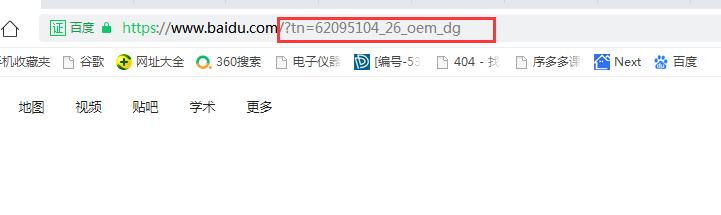 宜興博路網(wǎng)絡(luò)有時(shí)用360瀏覽器輸入百度網(wǎng)址后,會(huì)自動(dòng)帶上一串字符,如:https://www.baidu.com/?tn=62095104_26_oem_dg這個(gè)自動(dòng)帶上一串?dāng)?shù)字的小尾巴,如下圖所示: